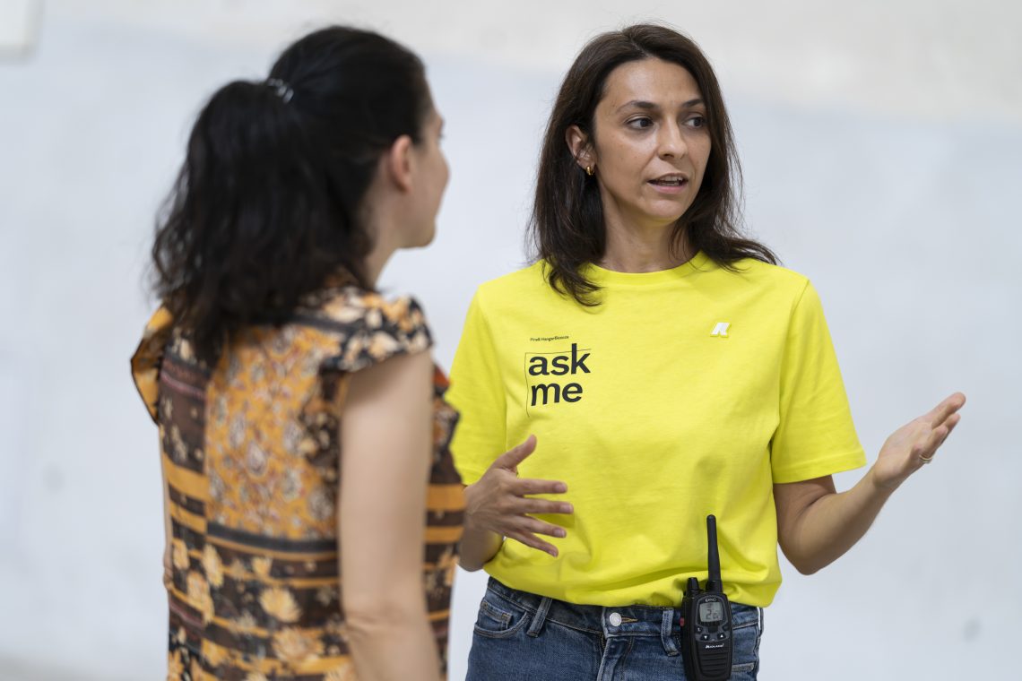 Museum mediation is a way of interacting based on constant dialogue among staff in the exhibition spaces and visitors. Through listening and interaction, cultural mediators relate to the public in the exhibition spaces to foster learing and to invite to an open relationship with art. Museum mediation is a free service continuously available in Pirelli HangarBicocca's temporary exhibitions and permanent installation's spaces.