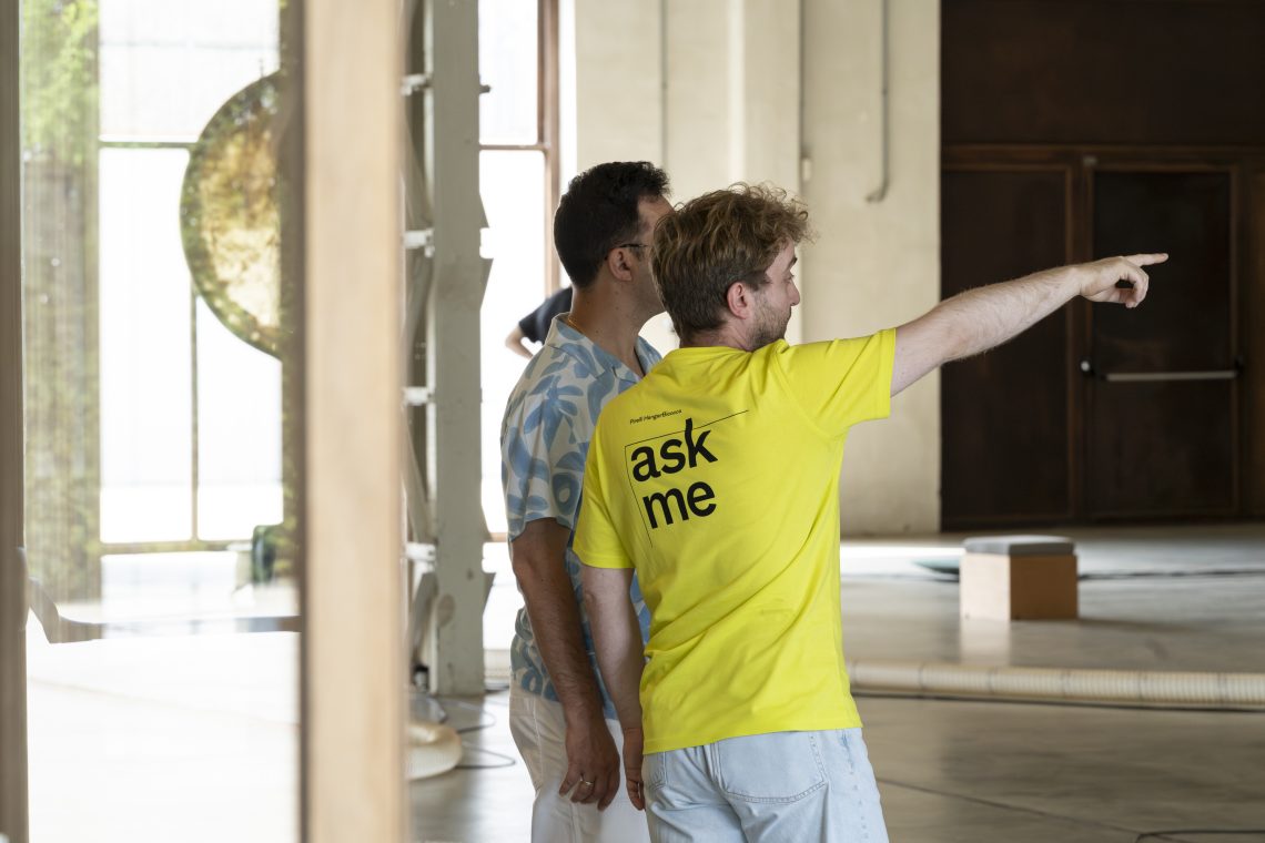 Museum mediators are always available in all Pirelli HangarBicocca's exhibition spaces. Visitors can address them for any question or insight on current exhibitions and permanent installations.