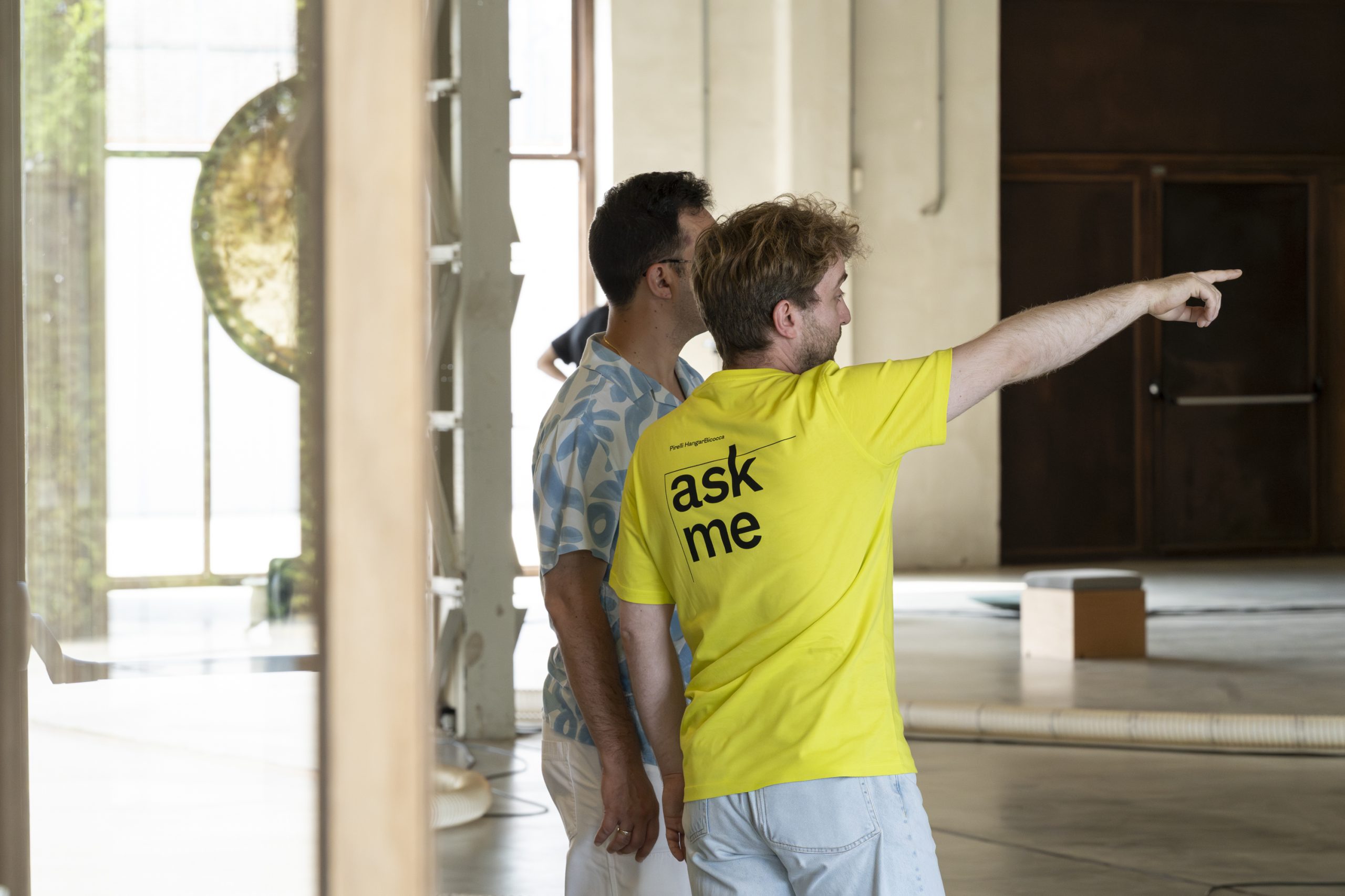 Museum mediators, who are always available in the exhibition spaces and can be easily identified by the institutional clothing, conduct guided tours on scheduled times or on demand. Moreover, they periodically arrange activities to introduce the public to the context and the contents of Pirelli HangarBicocca's exhibition projects.