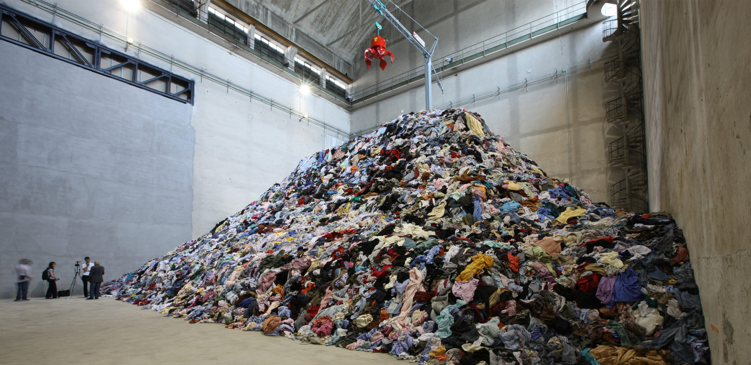 The difference derives from two essential motives: the particular features of the Milanese exhibition space itself and the presence within it of Anselm Kiefer’s extraordinary work The Seven Heavenly Palaces. In Milan, Boltanski has elected to make the Personnes installation less material-based and more spiritual and dramatic, emphasising the audio element and creating a dialogue between light and shade, life and death, to align it with the deepest meaning of Kiefer’s work and to adapt it to what he has defined as the “extraordinary” environment of HangarBicocca. The work is located at the far end of HangarBicocca, in the large Cube. To access it, visitors must make their way through a long aisle immersed in darkness, passing alongside Kiefer’s towers and, as they move forwards, they will hear the heartbeats that the artist has been recording since 2008 as part of his project entitled Les Archives du coeur. The sound of the human heart becomes ever-louder as the visitors proceed along a compulsory path, towards the illuminated space, where a large crane sitting above a great pile of used clothes randomly grabs a number of the garments from the pile and deposits them a few yards further away. This is an expression of the element of Chance or, for believers, the hand of God that chooses each day who will be expelled from life. Having passed through the dark, sonorous space, we advance along a narrow path delineated by a metal grid, without being able to turn back, as we are sucked into a visual allegory of destiny. The scene that opens up before us evokes, not without apprehension, the frailty of human beings at the mercy of inscrutable fate.