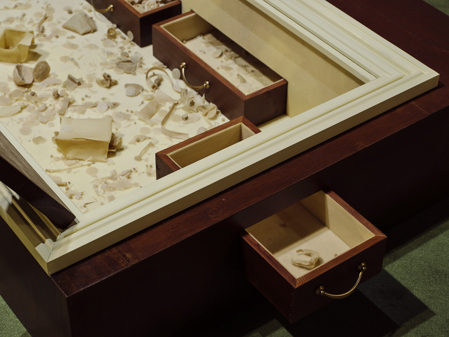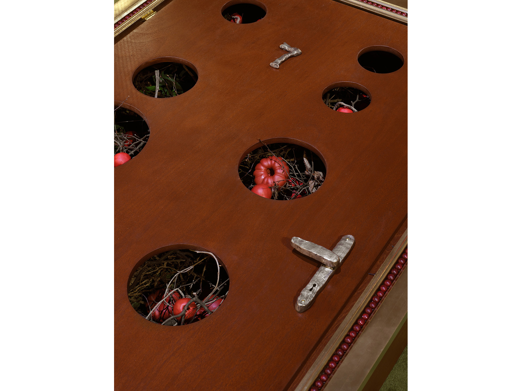 Nella fase iniziale del processo creativo, l’artista raccoglie con fare quasi bulimico materiali visivi, testuali, autobiografici e iconografici, che si stratificano e si trasformano fino a generare nuove immagini. Affascinata dai codici della messa in scena e dalle loro potenzialità trasformative, l’artista crea ambienti mutevoli che danno vita a un’esperienza immersiva per lo spettatore, in cui si intrecciano e coesistono diverse temporalità e prospettive.