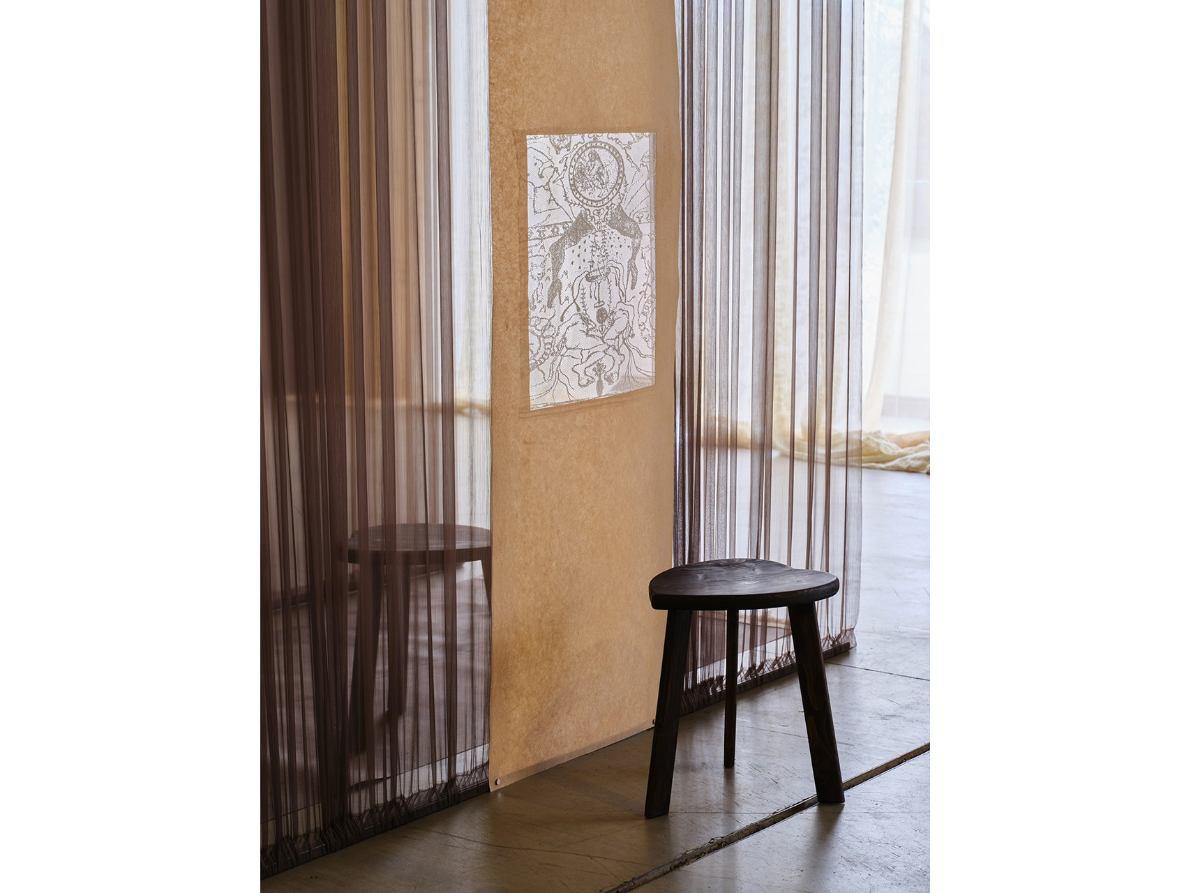La pratica di Benni Bosetto si fonda inoltre sul fare, sul creare, sui tempi lunghi della manualità (ogni disegno è realizzato a mano dall’artista in mesi di lavoro) e ogni ornamento, ogni decoro privo di funzione nello spazio-casa assume però una valenza simbolica in cui pratica e intenzione artistica portano all’unico esito di costruire un riparo dall’incalzare e dalla pressione del tempo lineare: qui si può sognare ad occhi aperti e ognuno ha la libertà di immaginare e affermare il proprio presente e il proprio futuro.