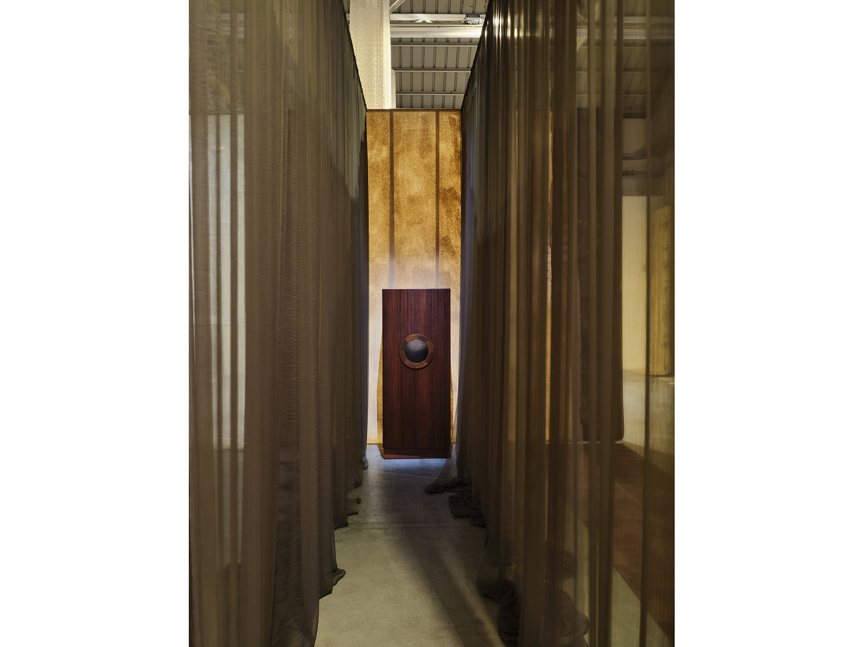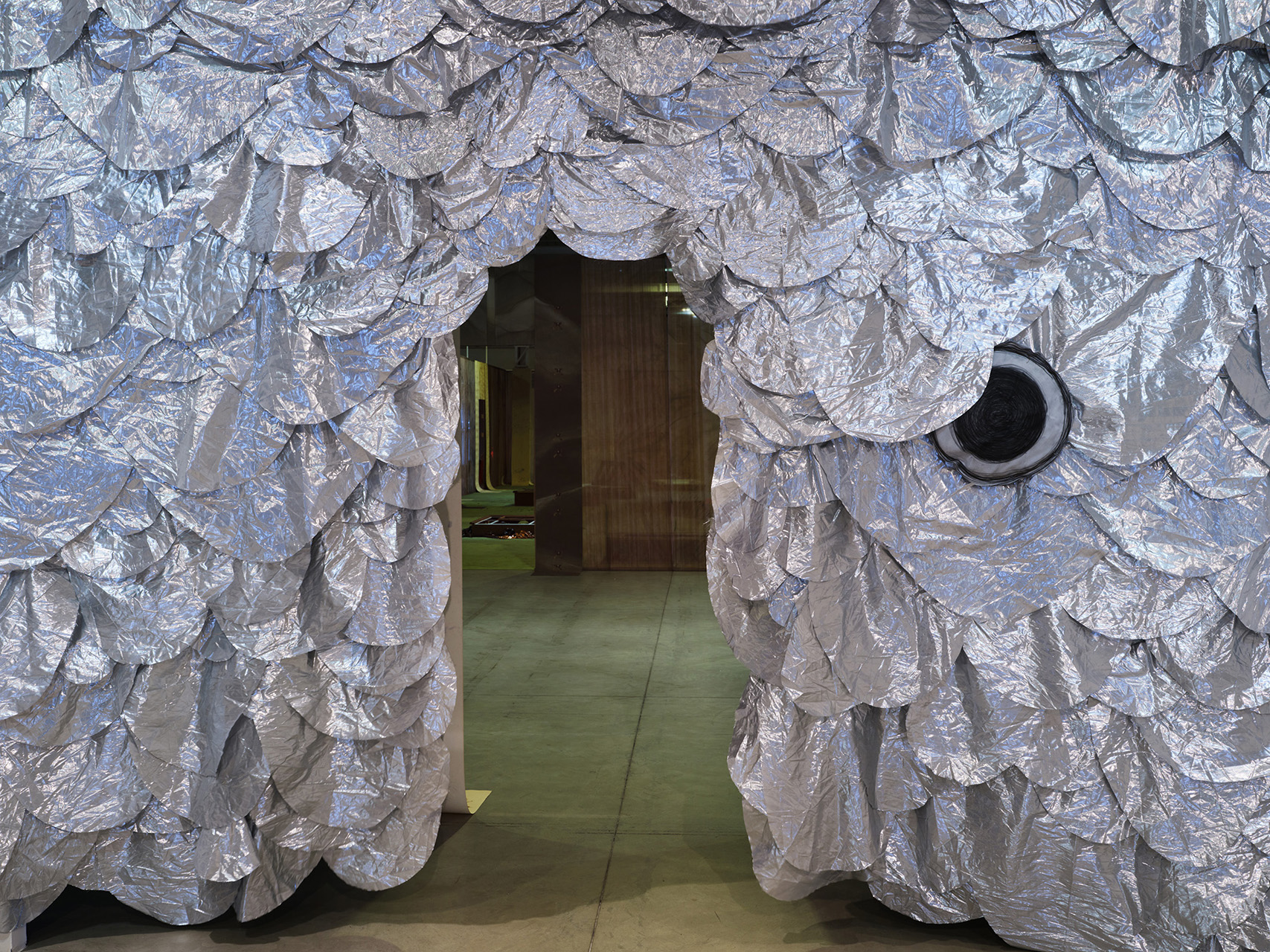 La casa, così come la mostra in Pirelli HangarBicocca, diventa un vero e proprio corpo femminile architettonico, un organismo vivente. Il nome Rebecca, che etimologicamente significa “legame, unione”, rimanda ai gesti dell’accogliere, del raccogliere e del trattenere, temi centrali nella poetica di Bosetto, in cui il corpo e l’ambiente si fondono in una relazione intima e continua.