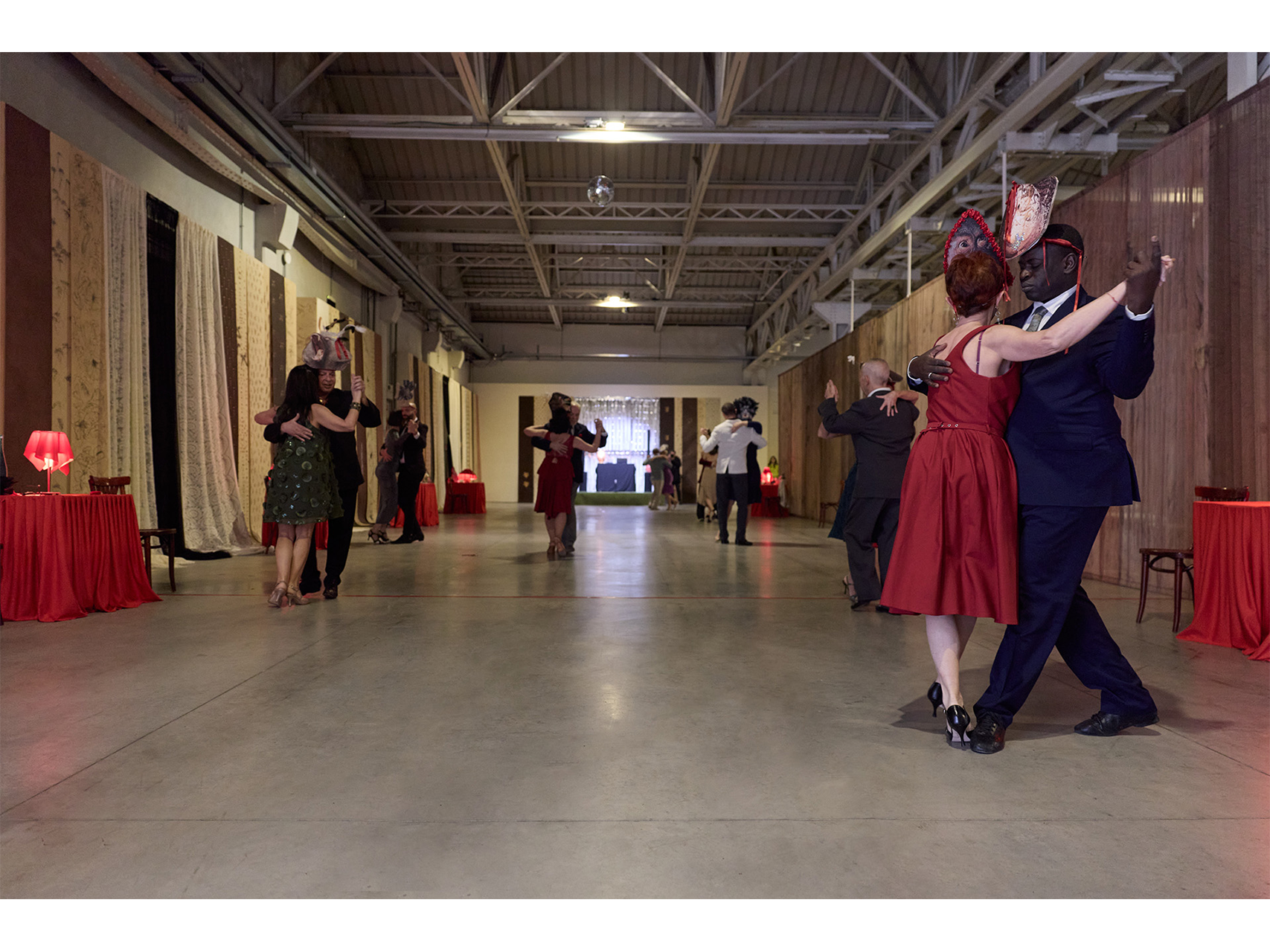 Tango (II version) riflette sull’innamoramento come processo di intossicazione e sulla fisicità dei sentimenti, giocando con cliché ed archetipi dell’amore. Ispirandosi al tango e all’ambiente tipico della milonga, la performance prevede sessioni con ballerini amatoriali che, indossando copricapi raffiguranti animali e piante, danno vita a una coreografia interspecie.