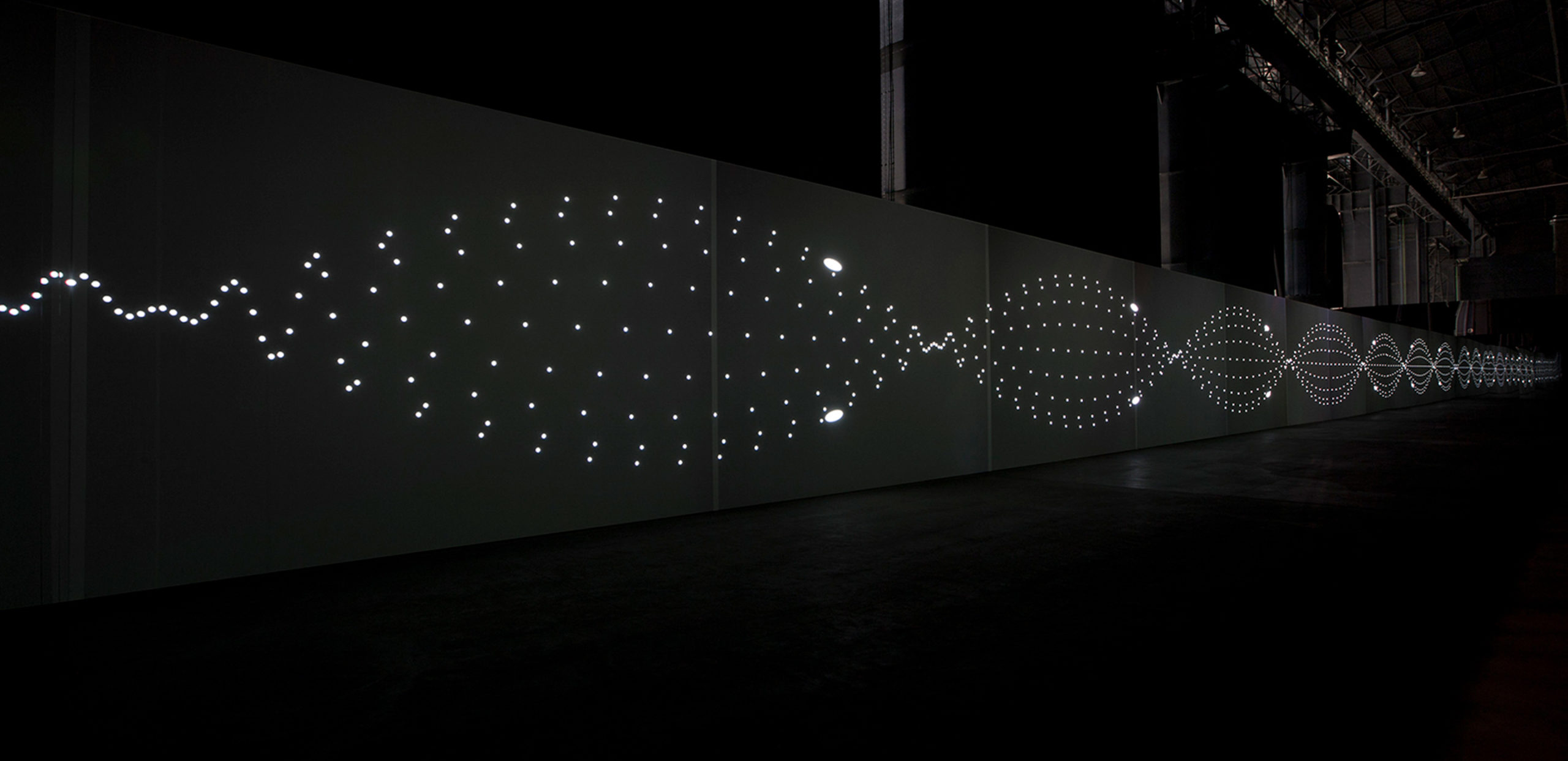Le sue opere coinvolgono la fisicità dello spettatore e lo spazio architettonico per cui sono concepite, mettendo in gioco i concetti stessi di spazio e di tempo. unidisplay riunisce in sé i temi più importanti del lavoro di Nicolai: la capacità di rendere percepibile il suono in modo ottico; l’estetica minimale che si traduce nell’uso monotonale del colore (variazioni sul bianco e nero) e delle sonorità; la propensione verso l’astrazione e quella verso l’infinito.